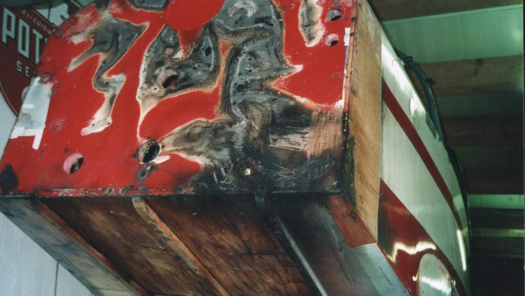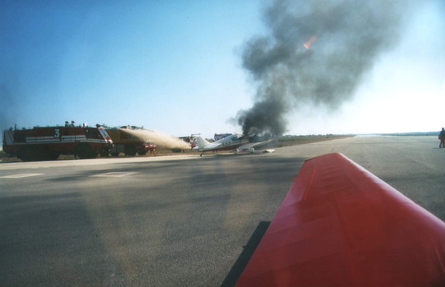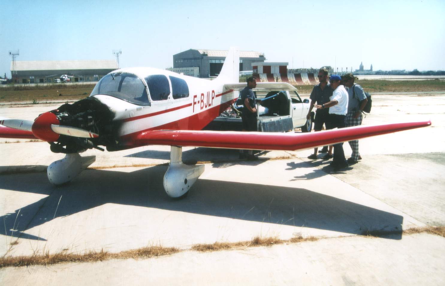 Until about mid-year 1998, Ekke and Jörg had a lot of fun (and sometimes a little bit of frustration thanks to the Potez' ignition) with their aircraft, nick-named 'Juliet'. But all this changed very sudden on a particular flight. During one of their tours with friends from a Fournier RF-3 club (Jörg also owns one of those together with some friends from Berlin), they were on a trip to Malta. After landing there at the airport of Valetta, the engine suddenly caught fire while taxying back after landing on runway 14. Thanks to the very fast responding fire fighters at the airport, Juliet didn't go the way of so many Jodel aircraft of this type. The fire could be extinguished before the whole airplane spread past the fire wall to the (wooden!) fuselage. After removing the scorched cowling it was found that one of the silencers had developed an egg-sized hole emanating from a crack. The hot exhaust gases escaping through this hole burned through a fuel hose and finally set the engine on fire - thankfully only after the landing! The date was July 20, 1998.