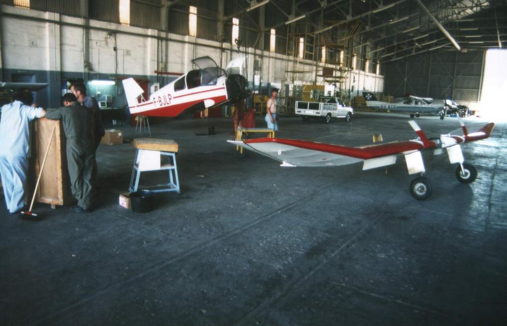 After that, the history of F-BJLP becomes a little bit dim. 'LP resurfaced in 1994 when Jörg Spittler and Ekkehard Jenne bought her from Monsieur Lemaire of Grenoble Le Versoud (LFLG), France, for the sum of 110.000 FF. M. Lemaire had used the aircraft frequently to visit his seven children, which live all over France. Ekke and Jörg had heard via a French friend that the aircraft was for sale - it had not even been avdvertised yet. After the sale, they moved the aircraft to Straussberg near Berlin, Germany, where they were studying aerospace engineering at the time. About six months later, while looking through the paperwork that came with the aircraft, they discovered that their aircraft had once been Pierre Robin's personal mount, used by him as a testbed and for racing and always equipped with the latest innovations and 'go-fast' modifications. What a pleasant surprise! During research in the French National Library in Paris, they even found pictures of the aircraft which can be considered final proof of BJLP's ancient history: Pierre Robin and his wife on the wing of the aircraft with the winning trophy of the Sicily Rally around his neck.