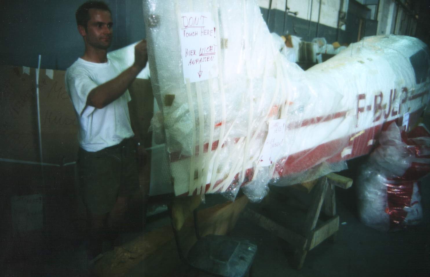With the aircraft saved but not flyable any more, it took eight days to disassemble and crate the aircraft to make it ready for a trip to Rotterdam by ship in a 40 foot container. The container arrived in Knittlingen near Bretten in the southwestern part of Germany in September of 1998. After this incident, Ekke decided to buy another Jodel, this time a Capitain. This left/leaves Jörg more or less alone with the repairs to be done, which are definitely too much for his limited spare time. Therefore he is looking for a partner in the aircraft to take over Ekke's share - both of the plane and of the work still involved! Any takers? The aircraft will probably be based at Mainz-Finthen (EDFZ), Germany.